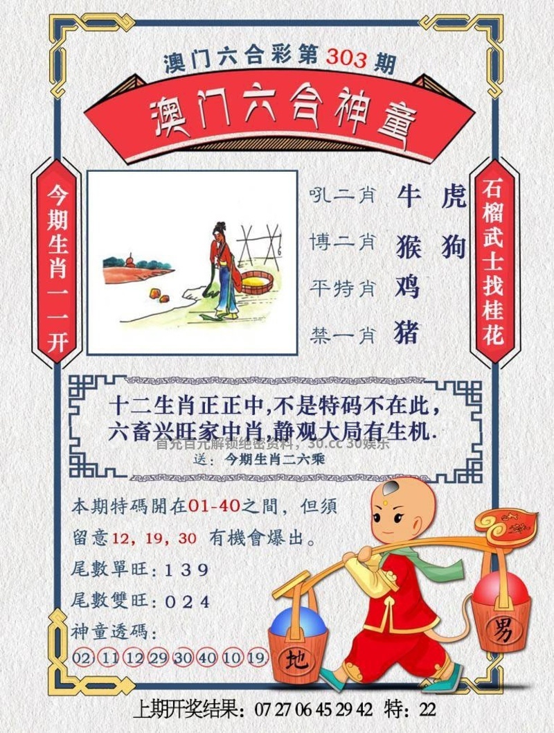 | 303期 | 三期必中 (猪羊龙狗) | 开 | ||